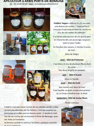 Le miel est produit localement, vendu en gros, au détail et alimente également la pâtisserie pour laquelle il travaille.